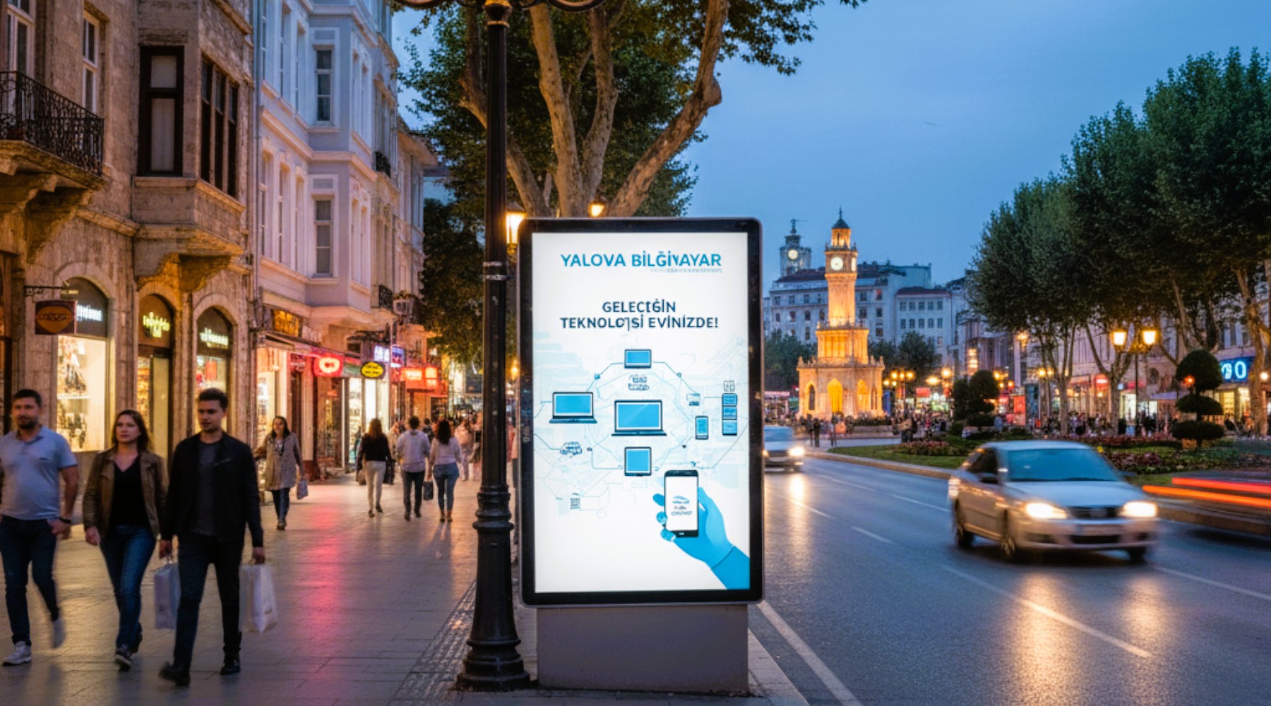 Yalova Merkez'deki Gazi Paşa Caddesi gibi ana arterlerde, CLP panolarının seri halinde yerleştirilmesi mesajın akılda kalıcılığını artırır.