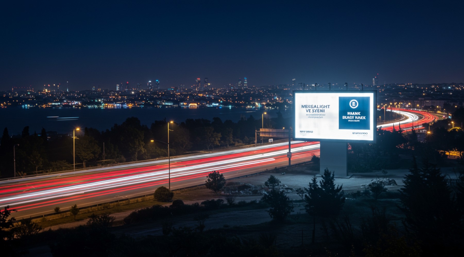 A Megalight billboard is a specially designed large-format outdoor advertising unit, exceeding standard billboard dimensions and featuring powerful internal lighting systems. These units are typically installed at high-traffic intersections, main boulevards, business districts, and premium shopping zones across Istanbul.